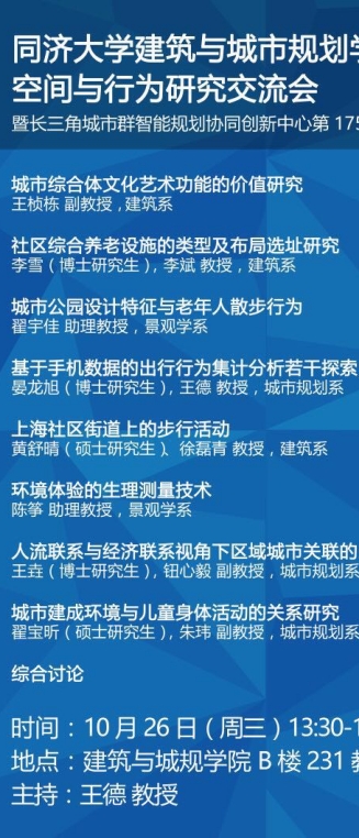 【10月26日 学术沙龙】空间与行为研究交流会