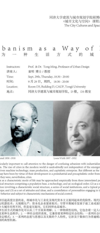 【9月29日 课程讲座】作为一种生活方式的城市化