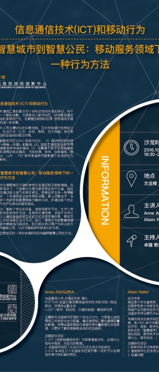 【10月17日 学术沙龙】信息通信技术(ICT)和移动行为 / 从智慧城市到智慧公民:移动服务领域下的一种行为方法