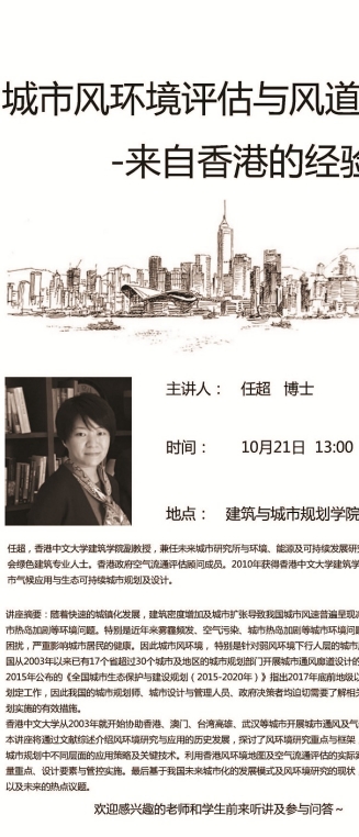 【10月21日 学术讲座】城市风环境评估与风道规划——来自香港的经验