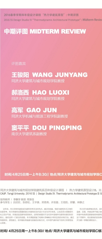 【4月25日 中期评图】“热力学建筑原型:光” 课程设计中期评图