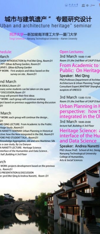 【3月3日 学术讲座】同济-南洋理工-厦大:“城市与建筑遗产”专题研究设计营同济站