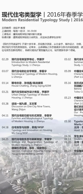 【2月-6月 课程讲座】现代住宅类型学(2016年春季学期)