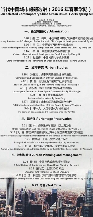 【3月-6月 课程讲座】当代中国城市问题选讲(2016年春季学期)