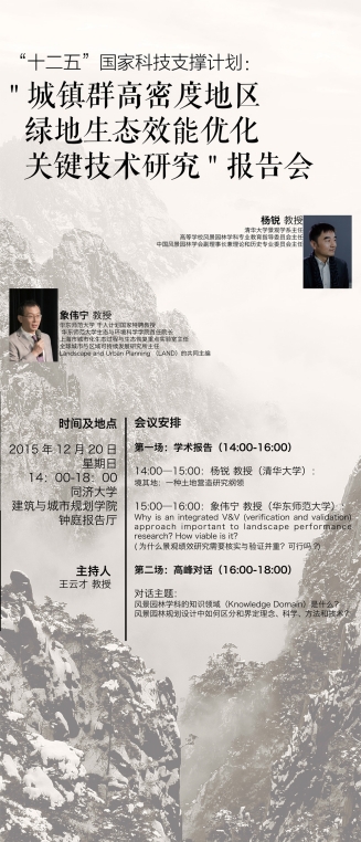 【12月20日 学术报告会】”十二五“国家科技支撑计划:”城镇群高密度地区绿地生态效能优化关键技术研究“报告会