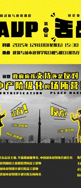 【12月18日 课程辩论赛】城市发展战略与政策课程辩论赛:政府应该支持还是反对造成中产阶级化的场所营造?