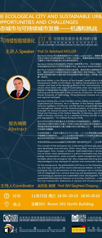 【11月25日 学术讲座】生态城市与可持续城市发展——机遇和挑战