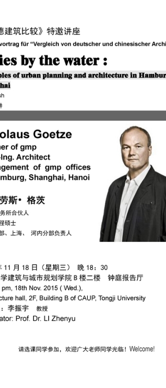 【11月18日 特邀讲座】Cities by the water: Examples of urban planning and architecture in Hamburg and Shanghai