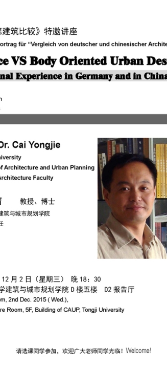 【12月2日 特邀讲座】Space VS Body Oriented Urban Design: Personal Experience in Germany and China