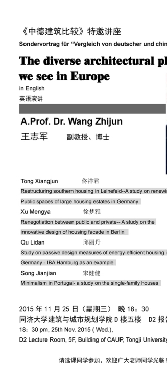【11月25日 特邀讲座】The diverse architectural phenomena we see in Europe