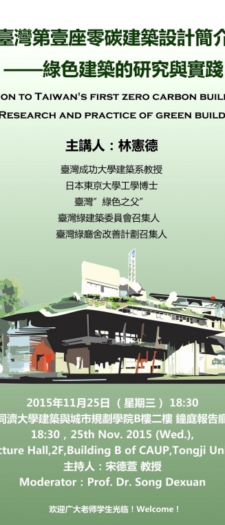 【11月25日 学术讲座】台湾第一座零碳建筑设计简介——绿色建筑的研究与实践