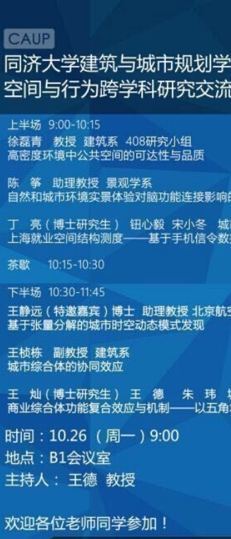 【10月26日 学术交流会】空间与行为跨学科研究交流会