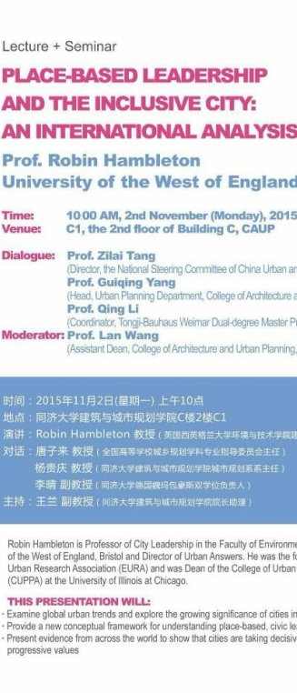 【11月2日 学术讲座】PLACE-BASED LEADERSHIP AND THE INCLUSIVE CITY: AN INTERNATIONAL ANALYSIS
