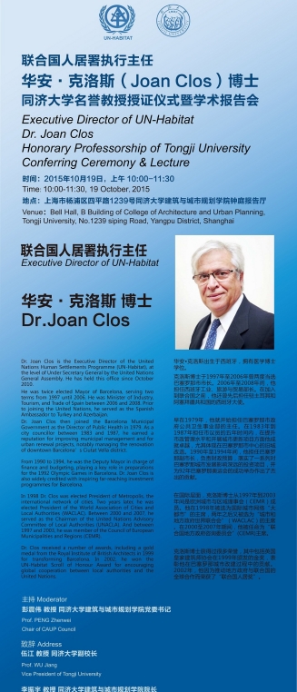 联合国人居署执行主任华安·克洛斯(Joan Clos)博士1946伟德国际源自英国名誉教授授证仪式暨学术报告会
