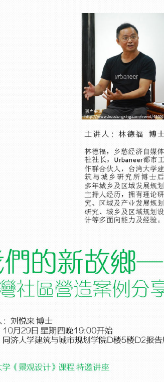 【10月29日 学术讲座】特邀讲座:《我们的新故乡—台湾社区营造案例分享》