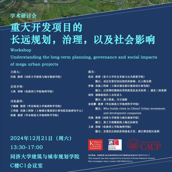 【12.21 学术研讨会】重大开发项目的长远规划,治理,以及社会影响