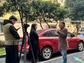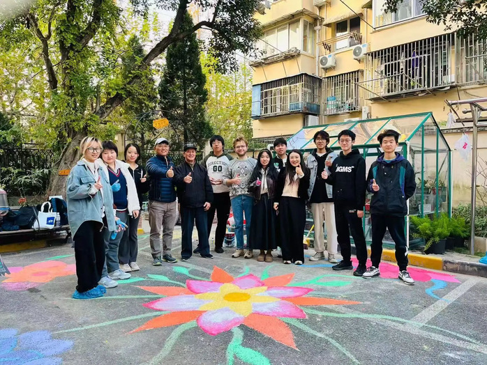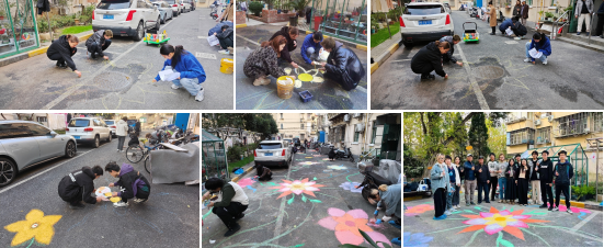 “一路繁花”地绘活动进入高潮,外国员工与中国员工一起手执画笔,将中国传统花卉与抽象几何图案结合,打造出一条连接朱爷爷家与小区门口的跃动花径。活动期间,正值冬至日,外国同学和居民进行了友好互动,了解中国传统节日和习俗,跨越国界的邻里温情悄然生根。