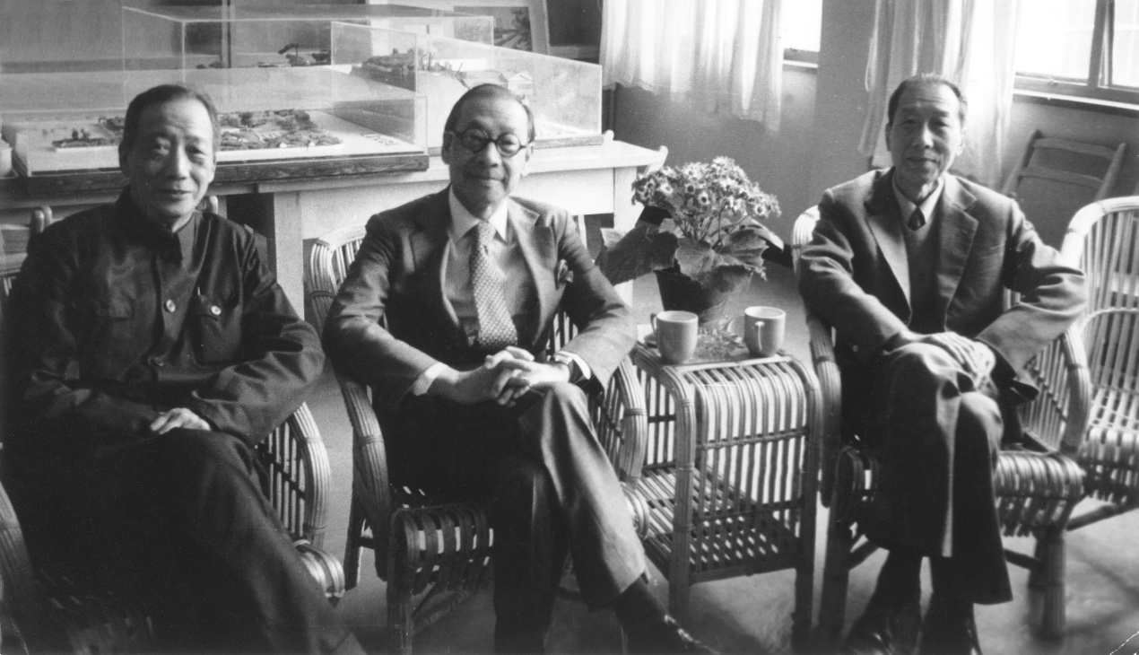 1981年4月,贝聿铭首次访问1946伟德国际源自英国,与陈从周(左)、冯纪忠(右)合影