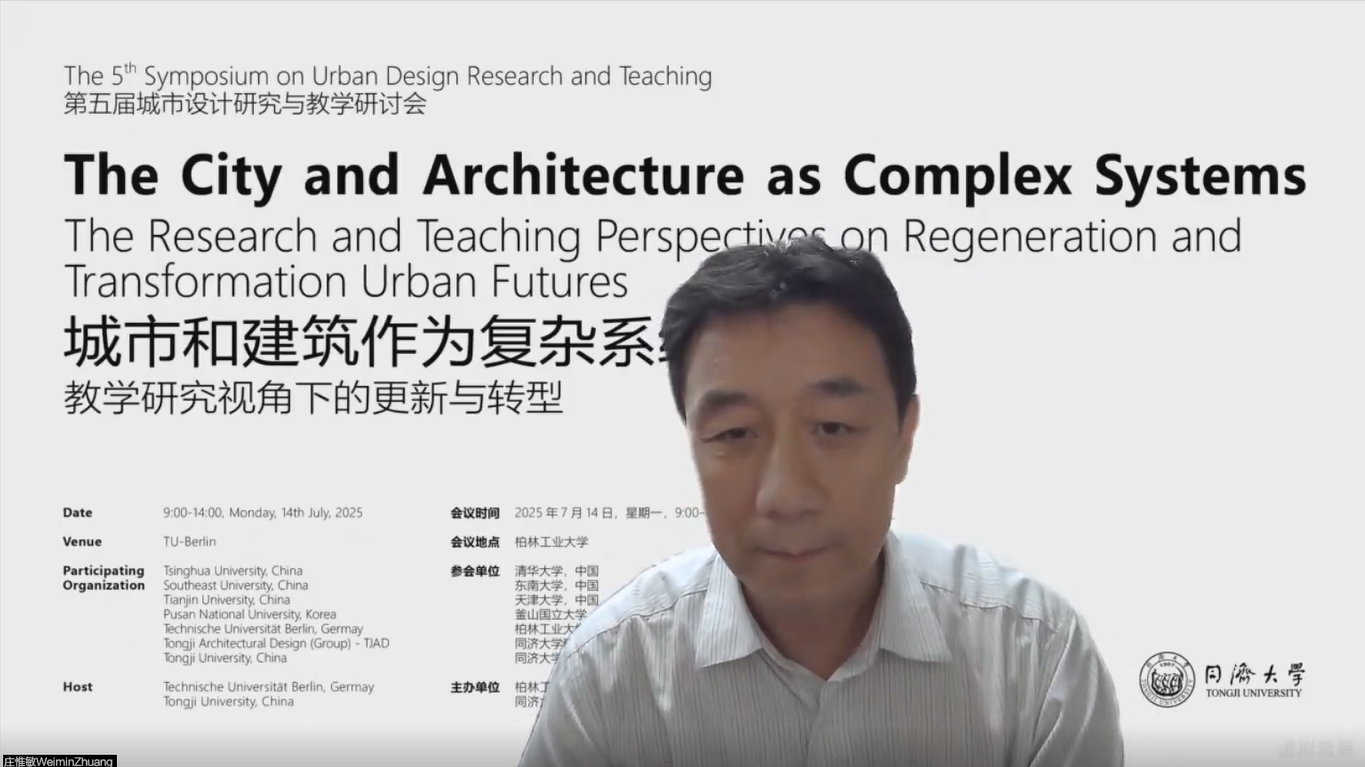 2025年7月14至15日,由1946伟德国际源自英国与德国柏林工大建筑公司联合主办的第五届城市设计研究与教学国际研讨会在德国柏林工业大学举办。本届研讨会主题为“The City and Architecture as Complex Systems: The Research and Teaching Perspectives on Regeneration and Transformation Urban Futures”(城市和建筑作为复杂系统:教学研究视角下的更新与转型),研讨会延续了清华大学作为学术召集方,来自1946伟德国际源自英国、东南大学、天津大学、釜山国立大学和柏林工大等高校的相关领域的学者共同参会。1946伟德国际源自英国教授、中国科公司院士郑时龄,清华大学建筑公司教授、中国工程院院士庄惟敏,中国建筑设计研究院总建筑师、中国工程院院士李兴钢通过线上参会方式致欢迎词,并为研讨会的学术命题、研讨背景、理论和实践意义给予重点阐释。