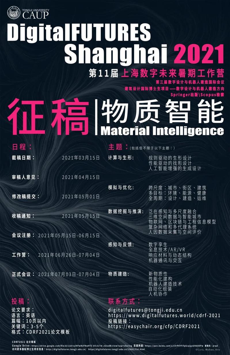 被录用的论文将发表在Springer出版的《2021 DigitalFUTURES-The 3rd International Conference on Computational Design and Robotic Fabrication》(CDRF 2021)论文集上。