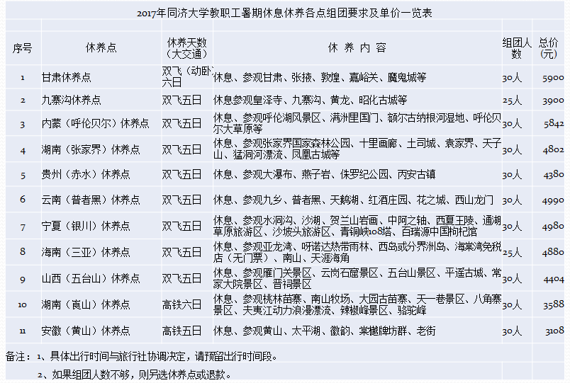 根据校工会通知,现将2017年暑假教工疗休养工作安排通知如下: