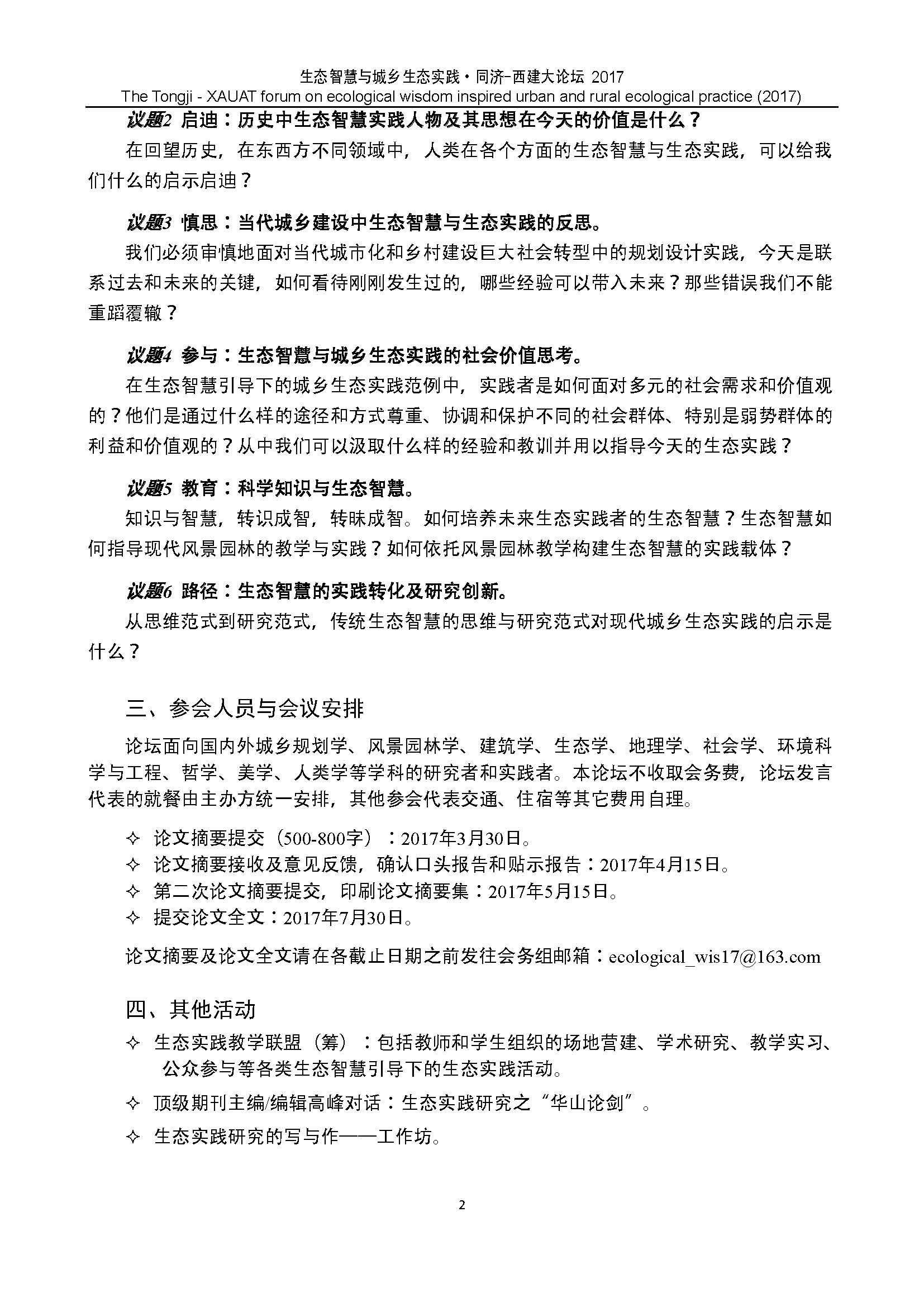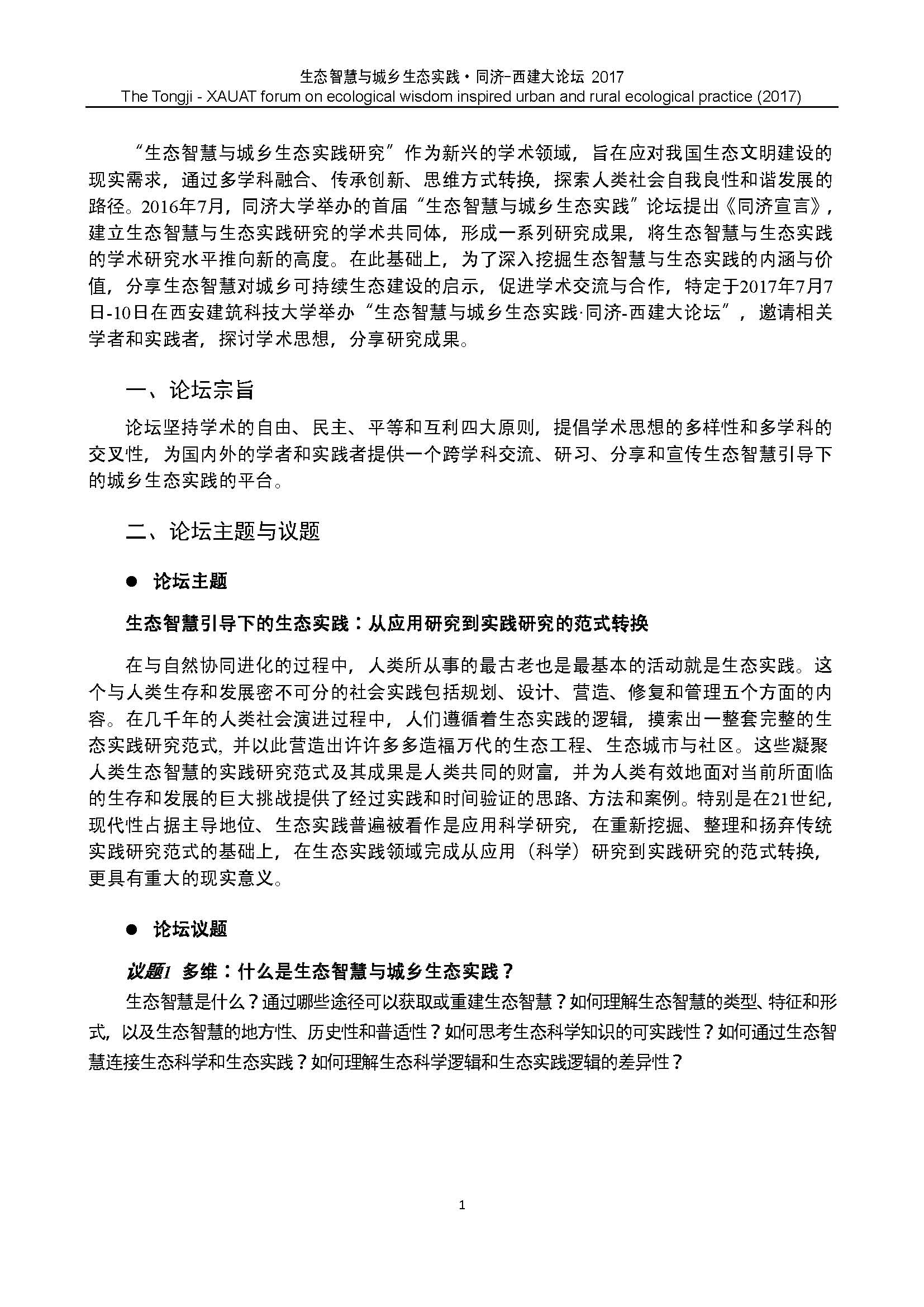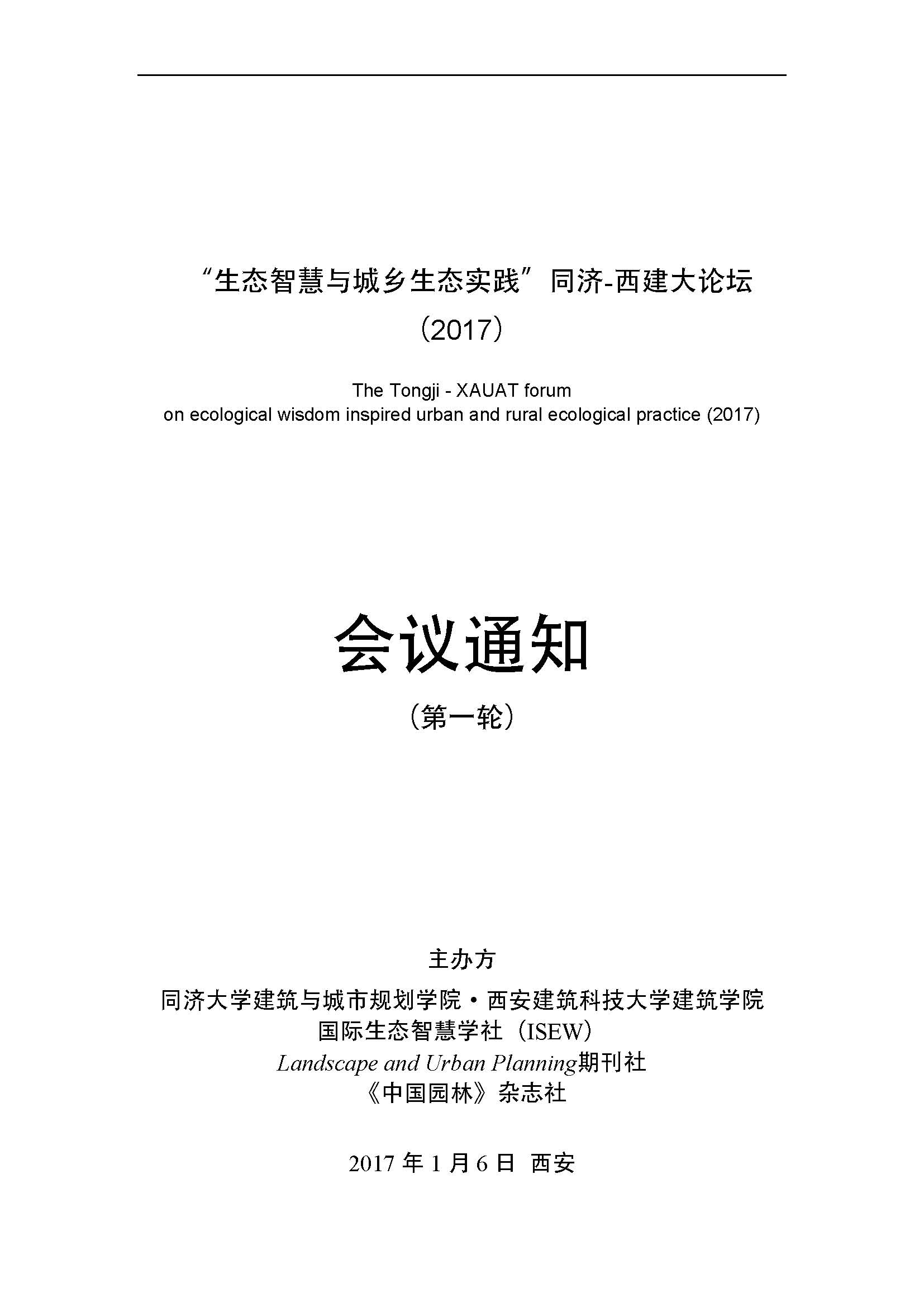 “生态智慧与城乡生态实践”同济-西建大论坛(第一轮会议通知)