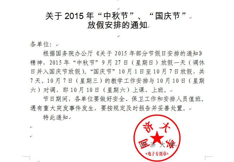 关于2015年“中秋节”、“国庆节”放假安排的通知