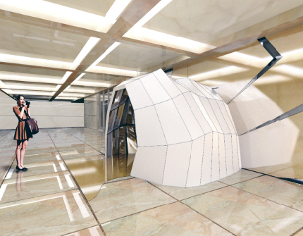 N的n次方x Open Systems Architecture:N个N面体棱柱组合而成的雕塑装置相互交错,这一奇特结构也是中英建筑和时装设计间相互交融的绝妙体现。