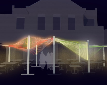 Pizza Marzano x Arup Associates:你有多久没有抬头仰望蓝天或星空?这个别致的由五彩线条构成的装置邀你移步室外,仰望一番流光溢影的奇妙景象。