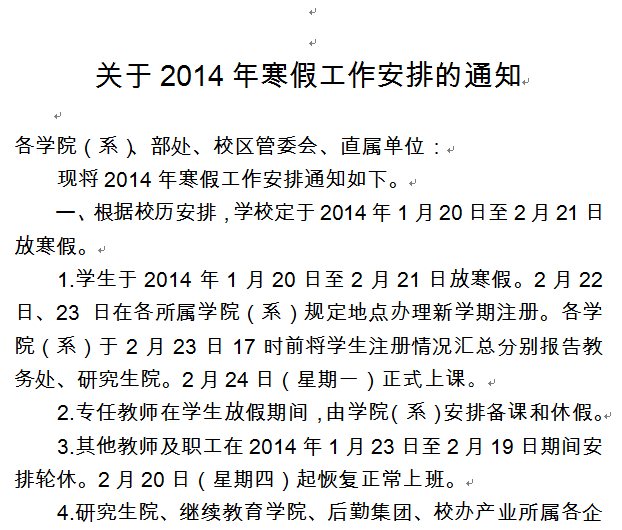 关于2014年寒假工作安排的通知