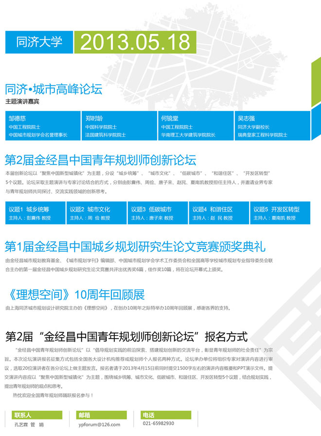 论坛将同期举办第一届金经昌中国城乡规划研究生论文竞赛颁奖典礼、《理想空间》10周年回顾展等活动。