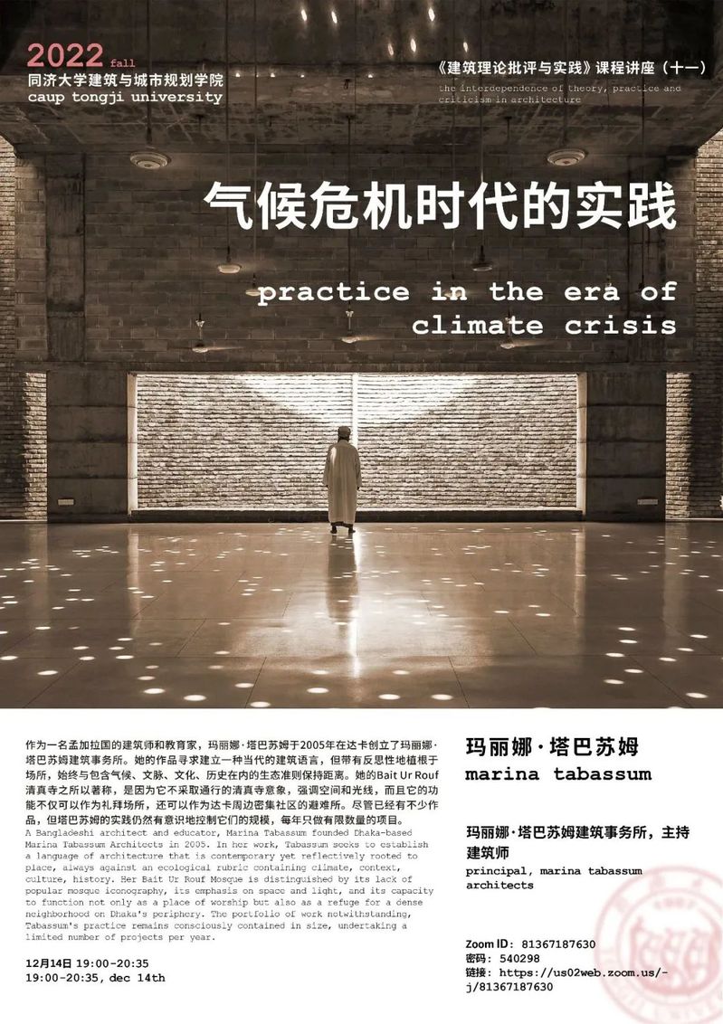 作为一名孟加拉国的建筑师和教育家,玛丽娜·塔巴苏姆于2005年在达卡创立了玛丽娜·塔巴苏姆建筑事务所。她的作品寻求建立一种当代的建筑语言,但带有反思性地植根于场所,始终与包含气候、文脉、文化、历史在内的生态准则保持距离。她的Bait Ur Rouf清真寺之所以著称,是因为它不采取通行的清真寺意象,强调空间和光线,而且它的功能不仅可以作为礼拜场所,还可以作为达卡周边密集社区的避难所。尽管已经有不少作品,但塔巴苏姆的实践仍然有意识地控制它们的规模,每年只做有限数量的项目。