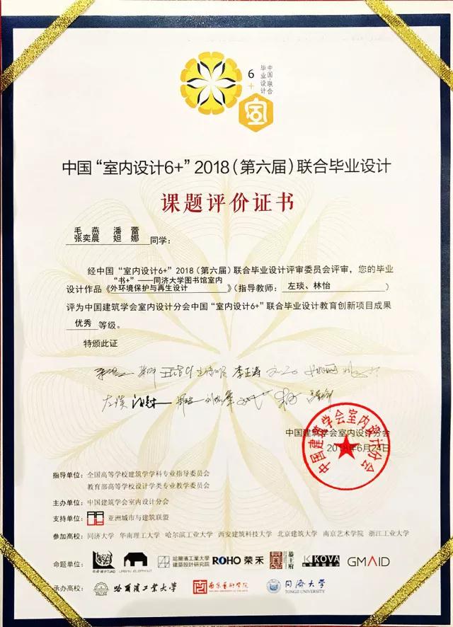 经过多轮评选,各高校选送共计13组答辩作品,有5组获得优秀等级,8组获得良好等级。公司左琰教授、林怡副教授指导的6位2014级建筑学(室内设计方向)专业同学和3位2013级建筑学专业同学中,同济二组(毛燕、潘蕾、张奕晨、妲娜)和同济一组(李一丹、张迪凡、许可、马一茗、刘雨婷)分别获得优秀组第一、二名,两位老师分别获评优秀指导教师。