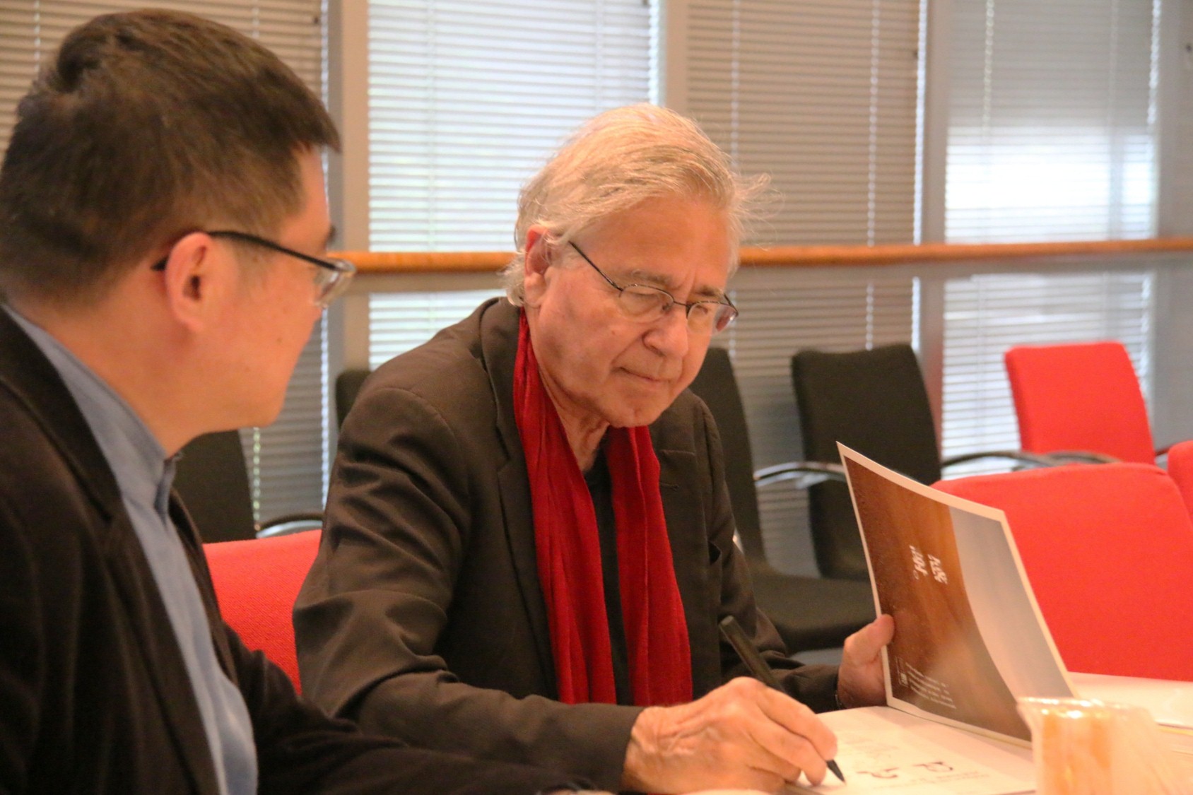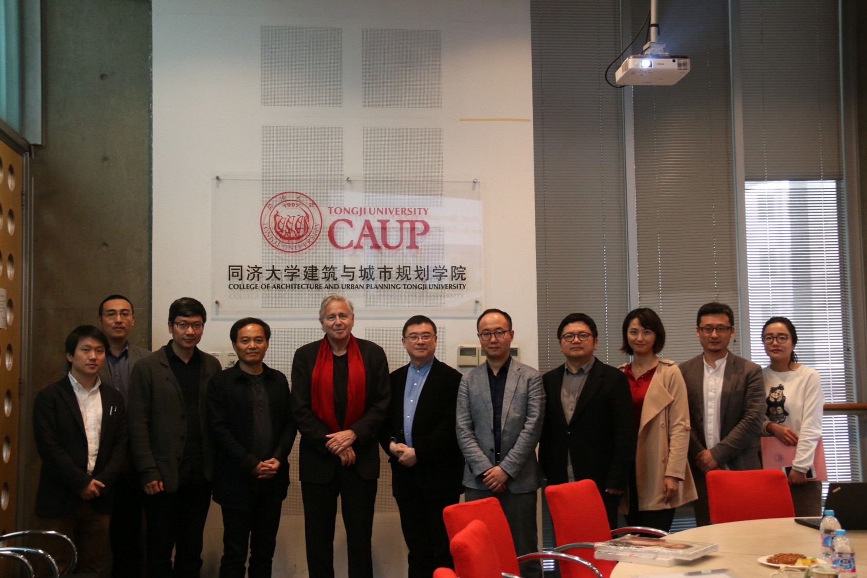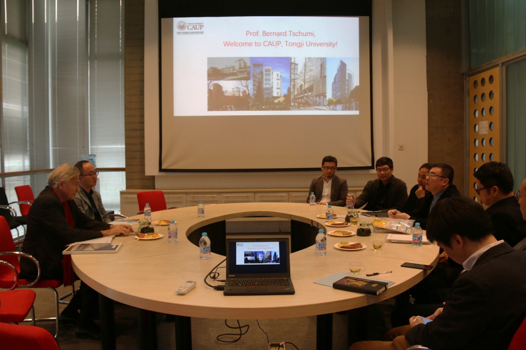 在欢迎与交流会上,李振宇经理代表公司热烈欢迎屈米教授的来访,向他介绍了公司的发展历程和坚持走在时代前沿的价值取向,以及公司近年来逐步明确的多元创新的科研方向,即关注生态城市、绿色建筑、数字设计、遗产保护等几大领域。在介绍中,李振宇经理强调了公司注重与实践结合的办学态度,并详细介绍了公司教师的优秀实践项目,取得屈米教授高度的认可。此外,作为美国哥伦比亚大学建筑公司的前任经理和核心教授,屈米对公司十年来成功建设的近二十个国际双向双学位项目和各类活跃的国际交流活动表达了极大的兴趣,希望未来能够推动同济和哥大两所建筑公司之间开拓更多的交流与合作。出席接待的教师代表还包括了建筑系系主任蔡永洁教授、副系主任章明教授、袁烽教授、王红军副教授、周鸣浩博士、谭峥博士、孙乐博士等。大家纷纷提问和发言,与屈米教授进行了热烈深入的学术对话。在会谈的最后,屈米还将其宝贵的签名版新书赠送给公司图书馆。