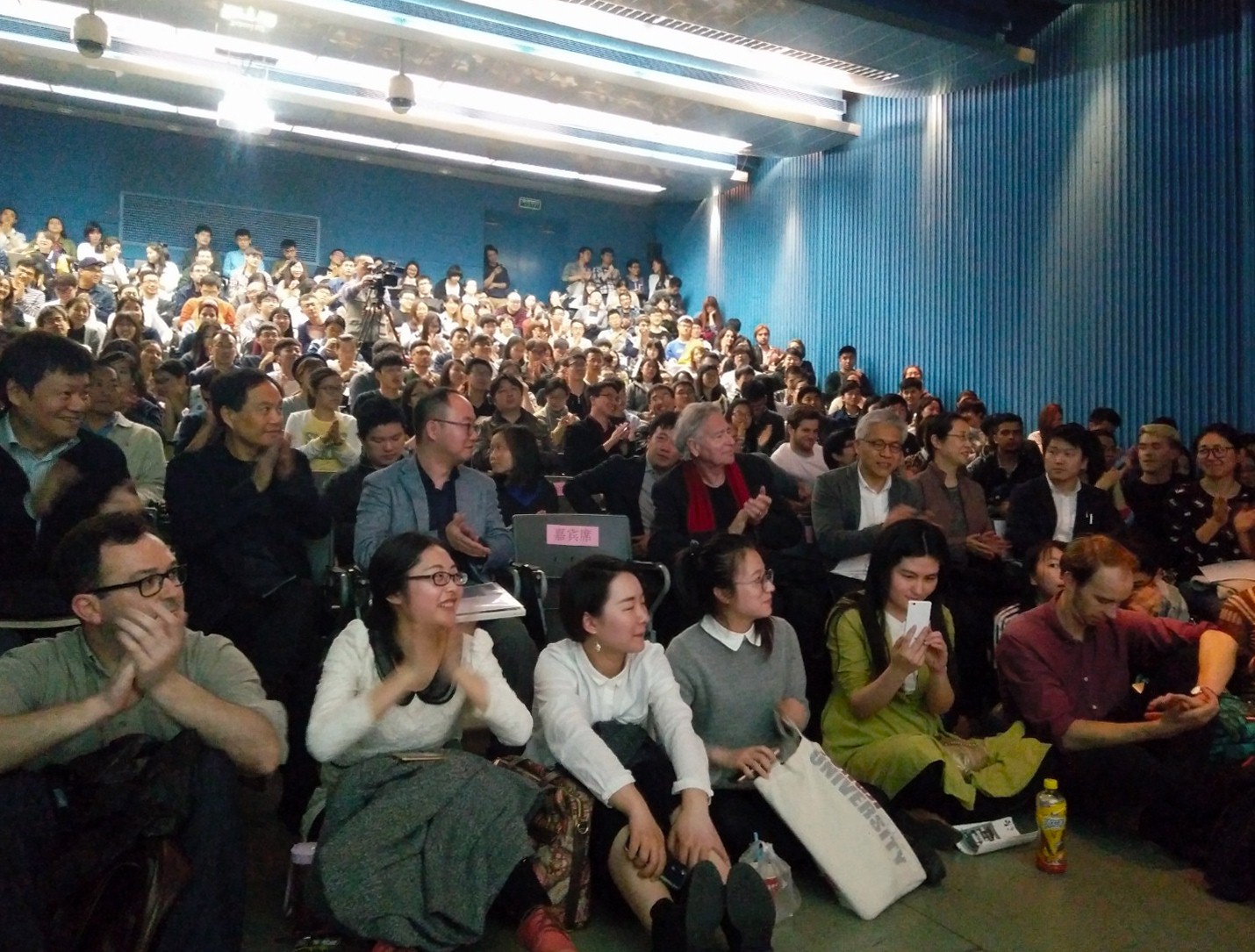 在接下来的提问环节中,听众异常踊跃。有一位同学提出了关于解构主义实际应用的问题,屈米认为解构主义的哲学并非只存在于建筑领域,它不只是某种形式或者风格的表现。另一位同学则提出了关于建筑功能置换的问题,屈米认为建筑自身的逻辑是随时间会改变的,同样的建筑形式会因为所发生的事件不同而不同。