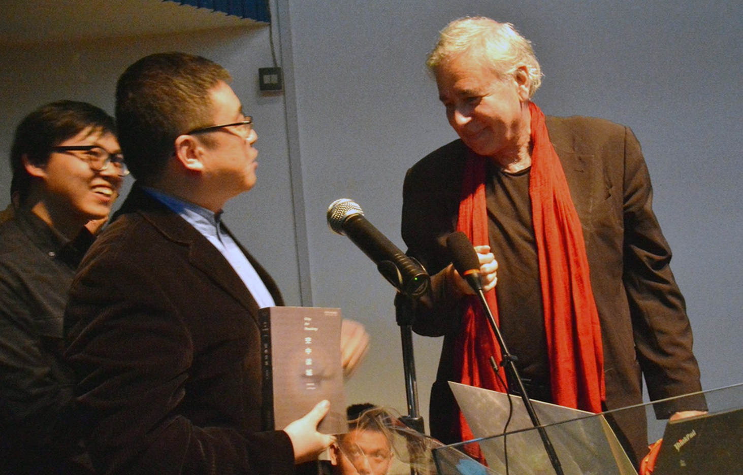 讲座最后,李振宇经理感谢屈米教授给大家带来精彩演讲,并将代表公司特色的一份礼物——李德华先生设计的丝巾以及自己的最新著作《空中读城》赠予屈米。