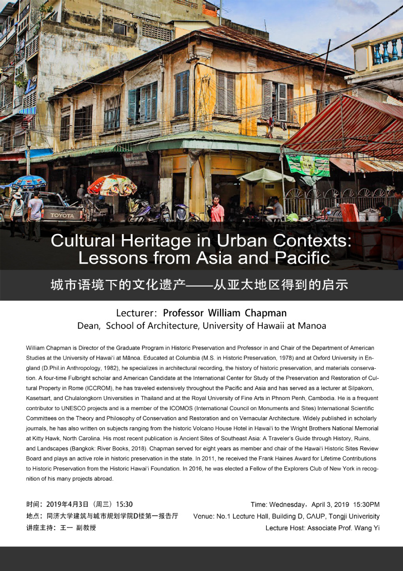 【4月3日 学术讲座】城市语境下的文化遗产—从亚太地区得到的启示