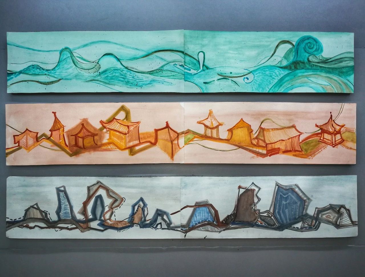 基于吴刚、阴佳两位指导教师贯穿于景观专业教学中让员工更多地了解和吸收传统文化与东方精神的教学理念, 在教学过程中,教与学都更多地注入了对传统绘画的意境营造及表现方式的再创作,教学以团队合作的方式展开,两班合二为一,相互交流,其间增设东西方造型艺术特征比较、传统文脉的当代创造、形态创作方法等系列课题讲座和实践环节。经过一个学期的努力,终于呈现出了这次颇有新意与品质的汇报展,欢迎各位前往观摩与交流!