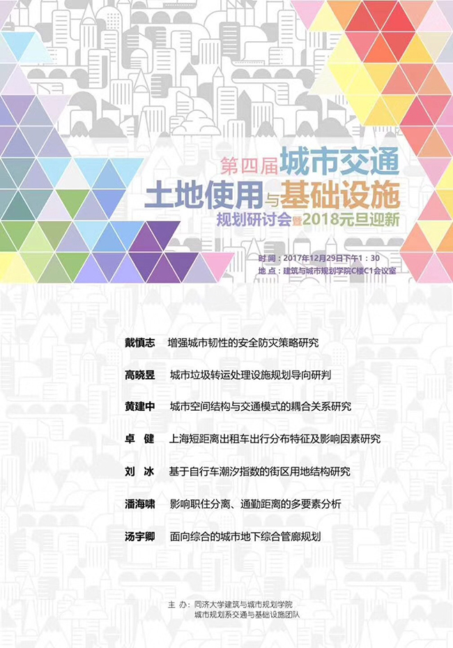 【12月29日 学术研讨会】第四届城市交通土地使用与基础设施规划研讨会暨2018元旦迎新