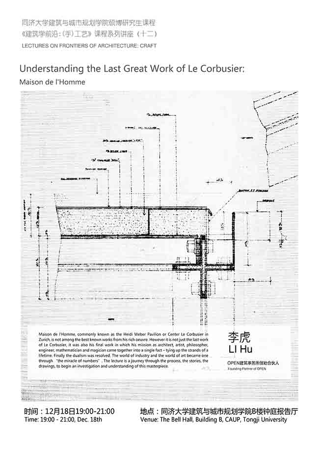 【12月18日 课程讲座】Understanding the Last Great Work of Le Corbusier