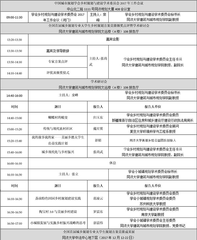 现定于2017年12月16日,在上海举办全国首届城乡规划专业老员工乡村规划方案竞赛颁奖及学术研讨会,同期举办全国首届城乡规划专业老员工规划方案竞赛成果展(全国自选基地及台州、合肥基地获奖作品)。