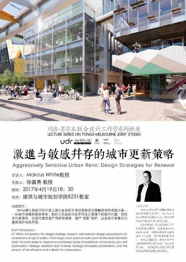 White博士将在不同尺度上展示由他所主导的更新项目策略研究和实践方案——从城市规模到建筑单体。他的工作旨在回应不同设计语境下的城市问题:包括步行连通性,近现代建筑遗产保护和更新,遗产“剪影”保护,以及城市密集化与建筑保护间的矛盾。