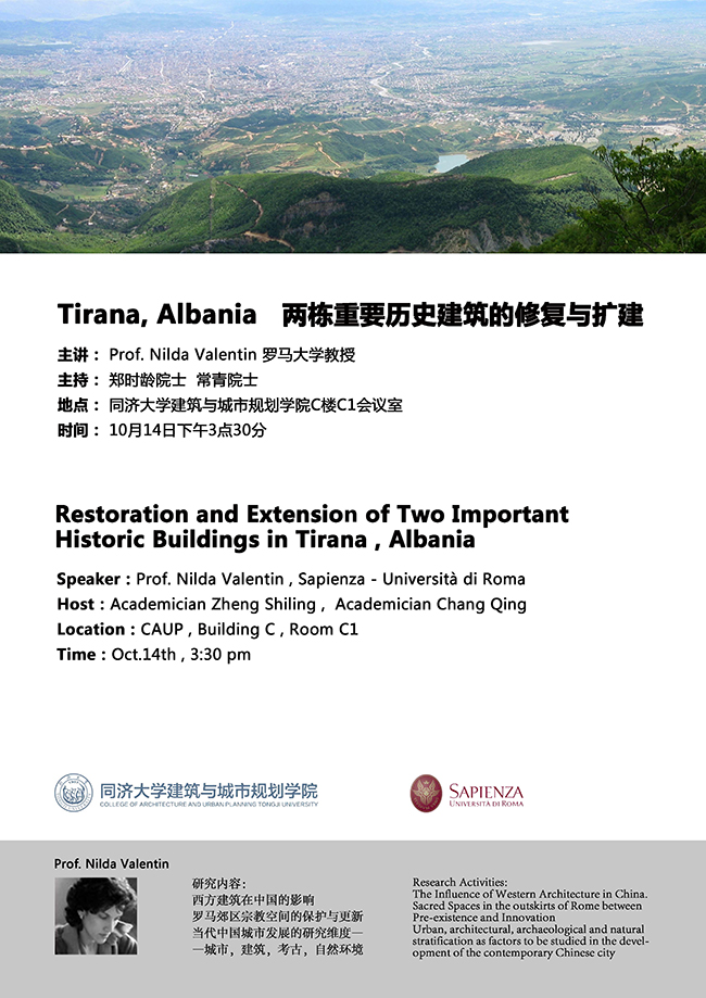 【10月14日 学术讲座】 Tirana, Albania 两栋重要历史建筑的修复与扩建