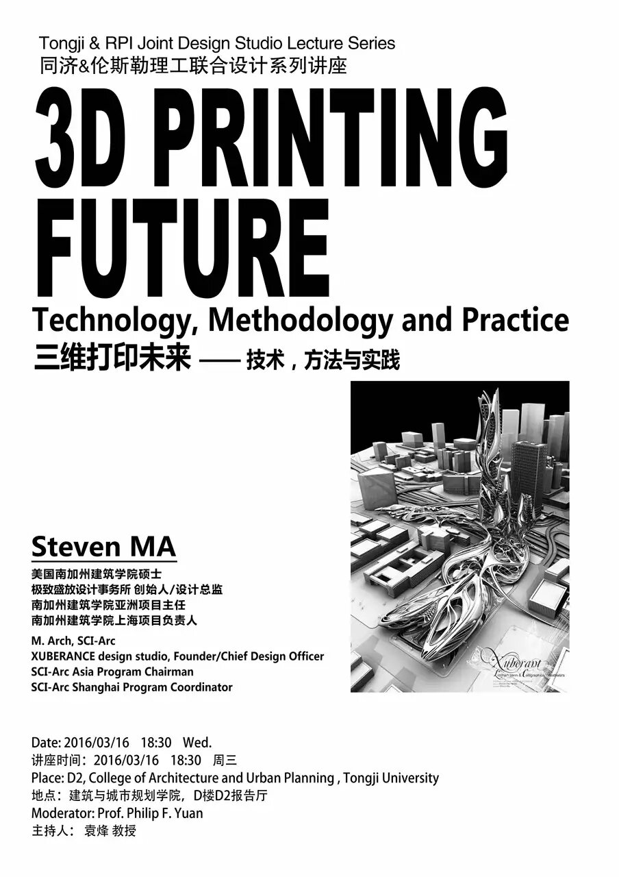 【3月16日 学术讲座】三维打印未来——技术,方法与实践
