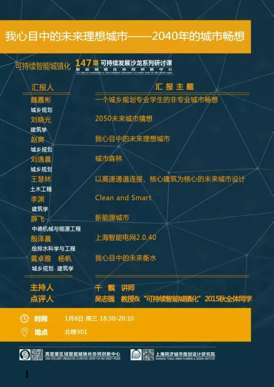 【1月6日 学术研讨】我心目中的未来理想城市——2040年的城市畅想
