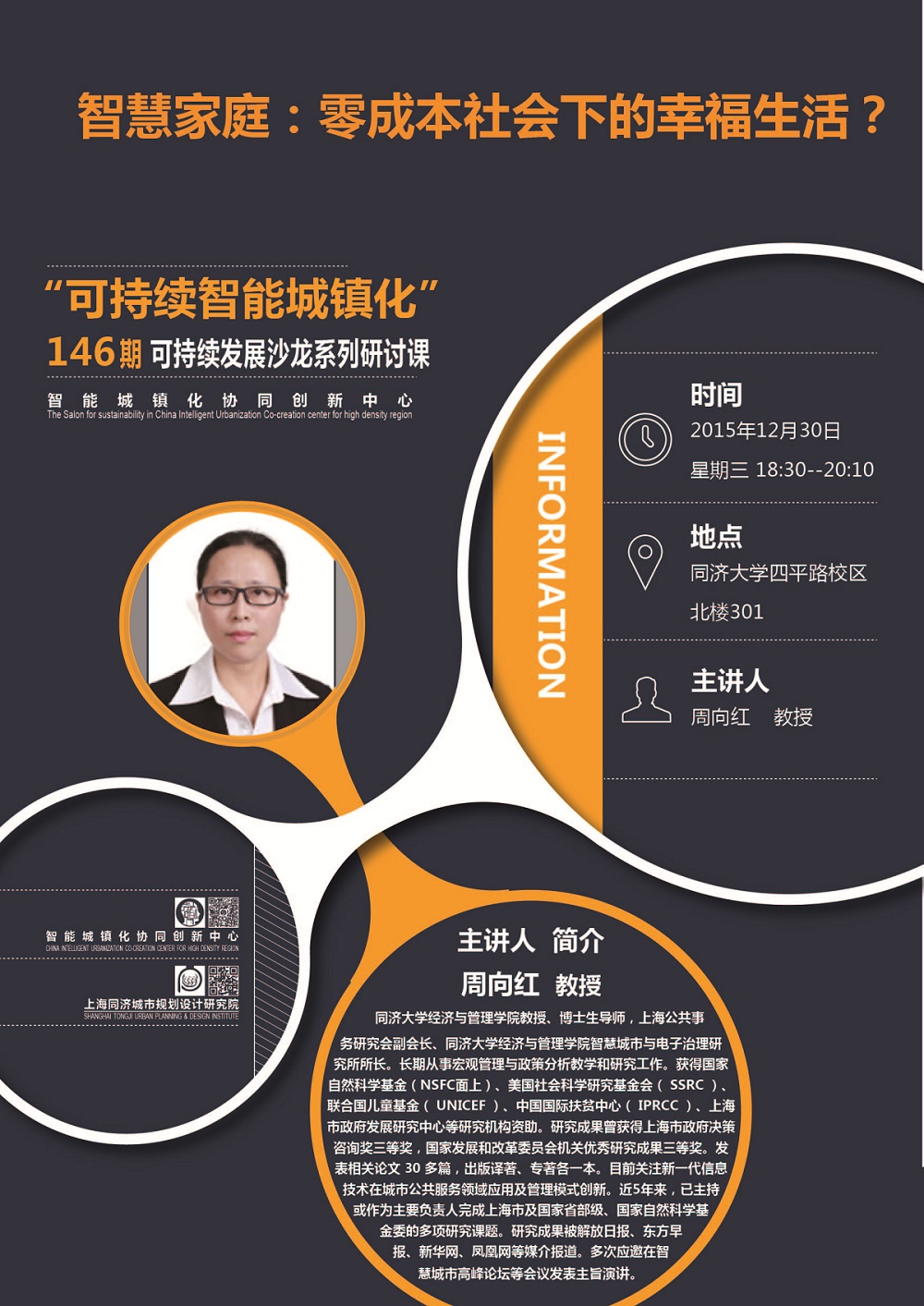 “可持续智能城镇化”2015年秋第十五讲暨第146期可持续发展沙龙系列研讨课