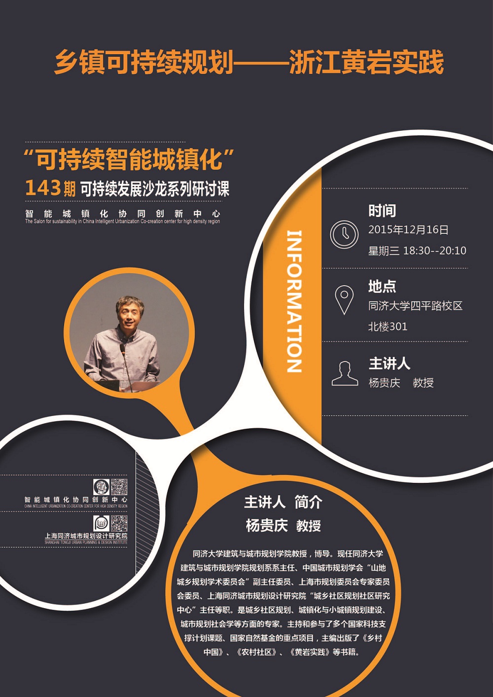 “可持续智能城镇化”2015年秋第十三讲暨第143期可持续发展沙龙系列研讨课