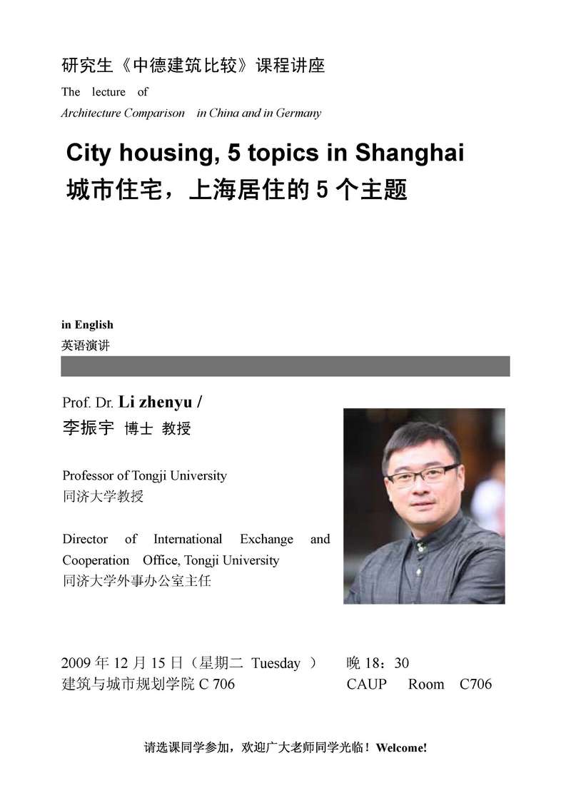 研究生《中德建筑比较》系列讲座 12月15日 - “City Housing,5 Topics in Shanghai”