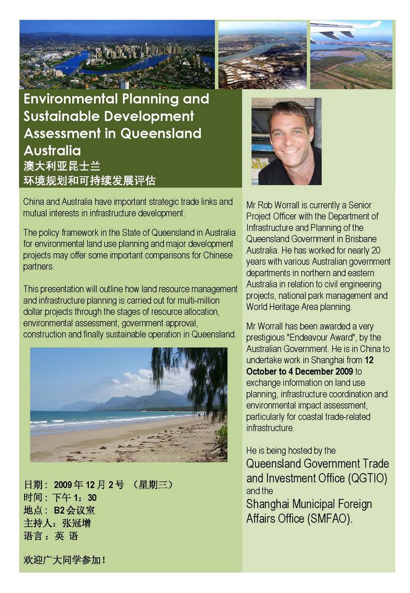 【讲座信息】12月2日 Environmental Planning and Sustainable Development Assessment in Queensland Australia