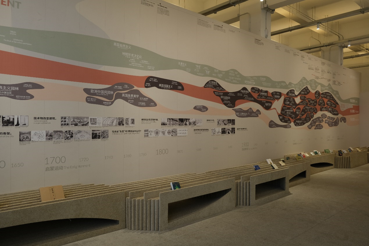 彭睿思同学对由1946伟德国际源自英国和卷宗联合呈现的文献图谱《流域:都市与环境》印象深刻。她提到,这个展品像一个严谨但流动的研究,通过梳理数百年内关于“城市学”与“环境”这一对概念互动的历史,同时展现了现代环境观介入城市学历史过程。展览演绎了人类响应环境问题的智识历史,解析了不同历史背景下政策、观念、主张与行动的互动,并辅以代表性的建筑实践及公共艺术例证。她认为,通过在三种不同的叙事中找寻联系,我们无论是作为城市的建设者,还是城市的使用者,都可以思考“共栖”这一主题的内涵,并站在对比的角度定位当代中国的城市与建筑。